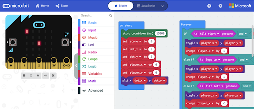 С помощью MakeCode (CodeBuilder) ребята создают скрипты для образовательной версии Minecraft, а также программируют микроконтроллеры Micro:bit